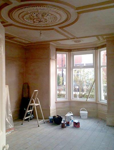 WDR Plastering take on restoration work from start to finish. From the rip out plastering and new cornice ceiling roses right through to the detailed painting, we also can restore broken moulds if possible. Here you’ll find some recent projects including some pictures taken before work started – we’re hoping you’ll guess which ones these are!